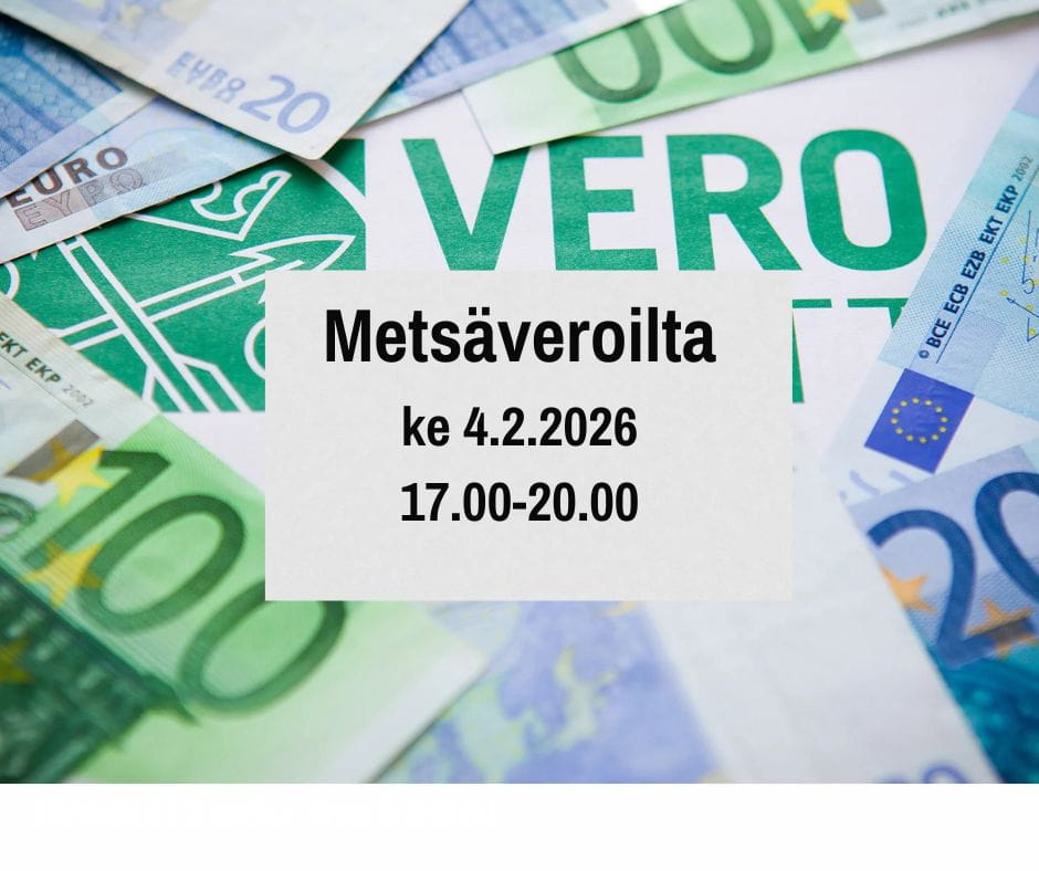 Tapahtumassa on mahdollista esittää kysymyksiä metsäverotukseen liittyen. Ilmoittautumiset 30.1.2026 mennessä ensisijaisesti sähköpostiin: