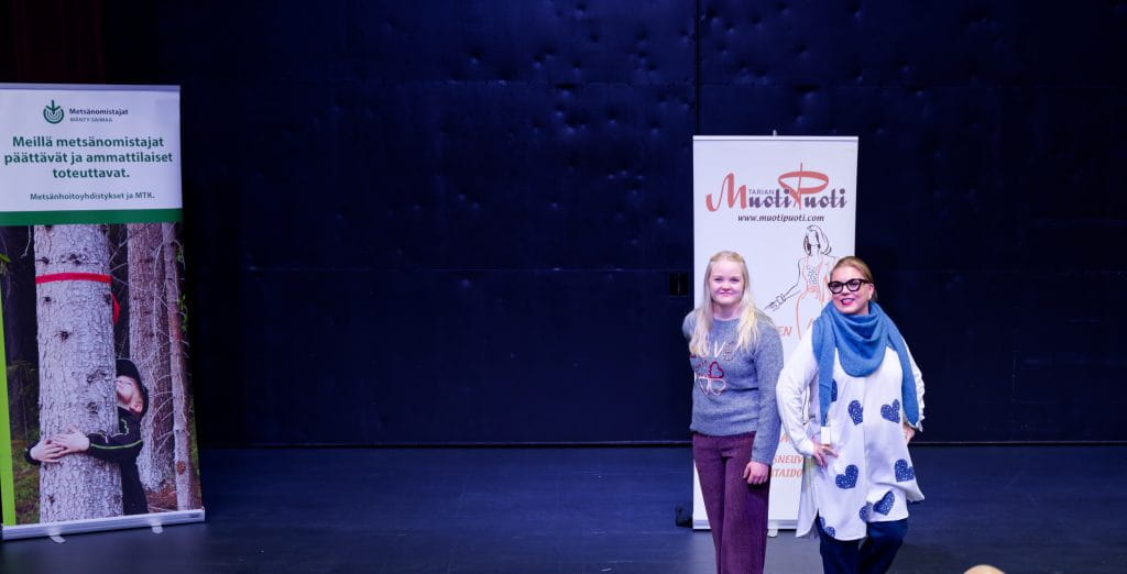 Ilta alkoi vauhdikkaasti paikallisen Tarjan Muotipuodin muotinäytöksellä. Toimihenkilöt pääsivät näyttämään taitonsa hieman normiarjesta poikkeavissa työtehtävissä ja yleisö kannusti hienosti taputtamalla rytmiä askeleisiin.